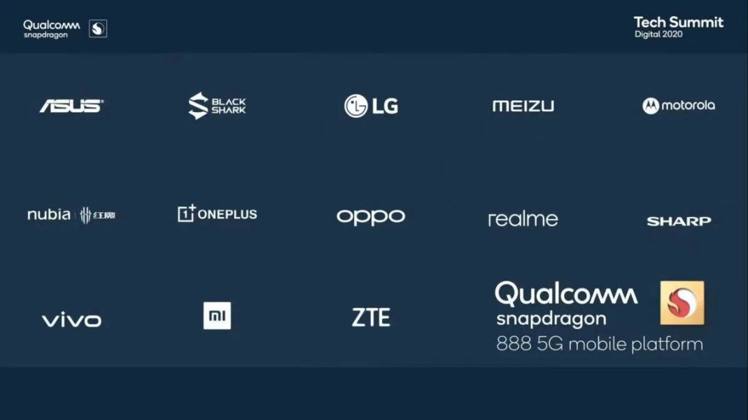 在骁龙技术峰会上,高通公布的第一批搭载骁龙888的14家OEM厂商中,除了索尼和LG外,其余12家均为中国手机企业,小米魅族、蓝绿大厂、一加中兴等品牌负责人也悉数出镜为骁龙888背书。