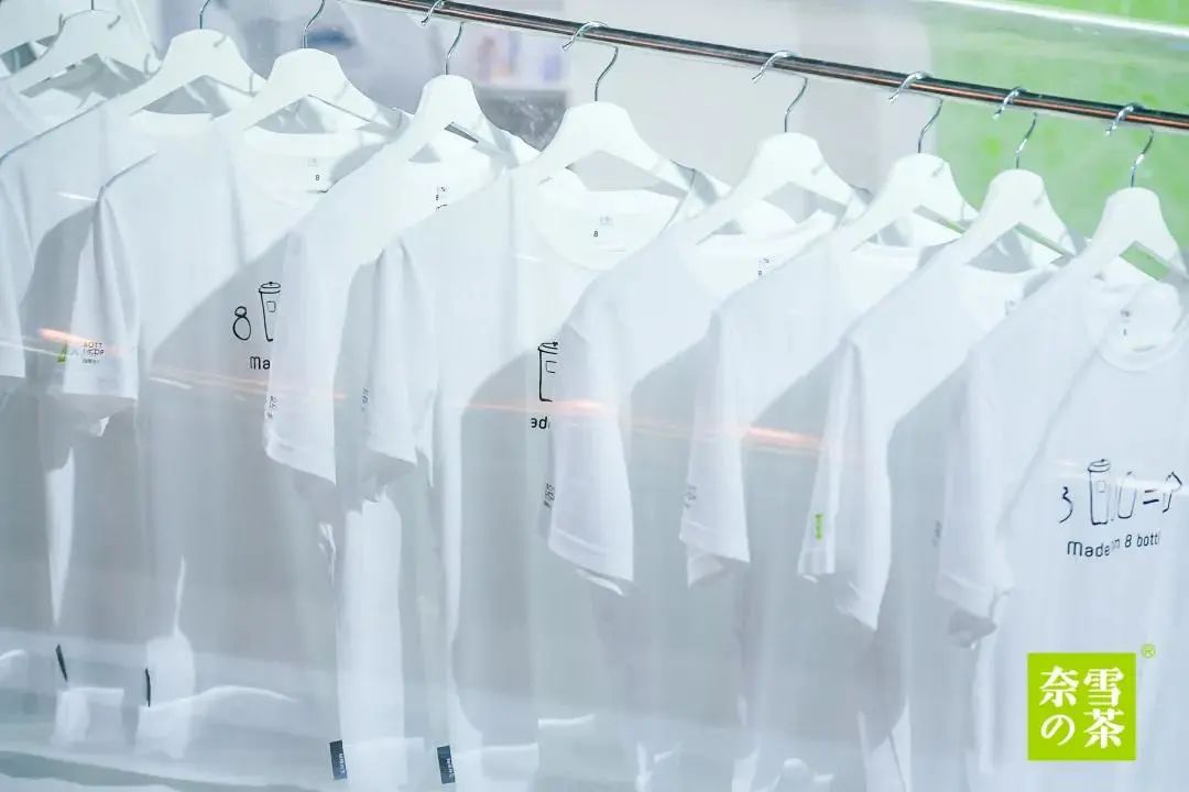 与此同时,在“美好万物”展区,奈雪在生日季全新推出了超过20款的五周年纪念款周边,诸如猫爪系列的随手杯和手拎包、艺术家联名拥抱系列限定T恤和背心袋、霸气茶研室的“请喝茶”杯和霸气草莓T恤等等,每一款都是珍藏限量版。