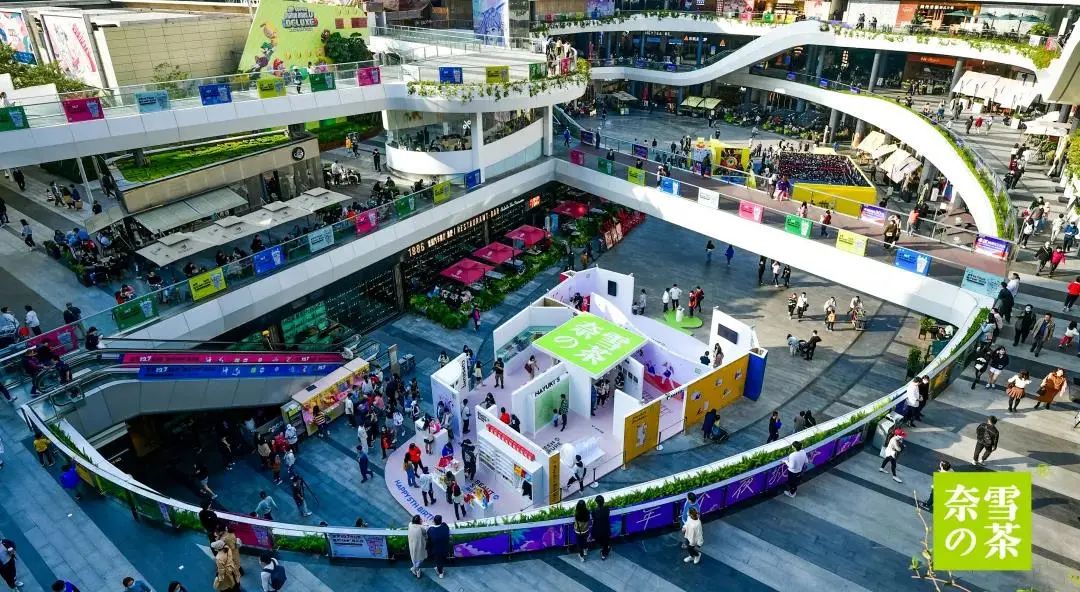 从12月5日到13日,奈雪将一个巨大的奈雪杯空降到了深圳福田星河COCO PARK B1 星空广场,开了一家以“奈雪127,美好生日季”为主题的快闪店。