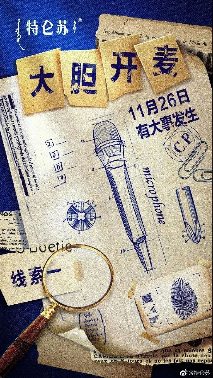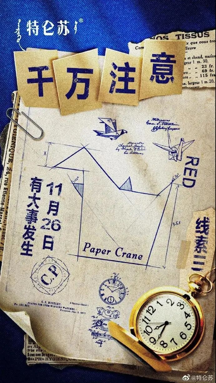 11月25日,特仑苏官微发布悬念海报,释出线索预热#易烊千玺代言特仑苏#话题,层层深入埋下伏笔。