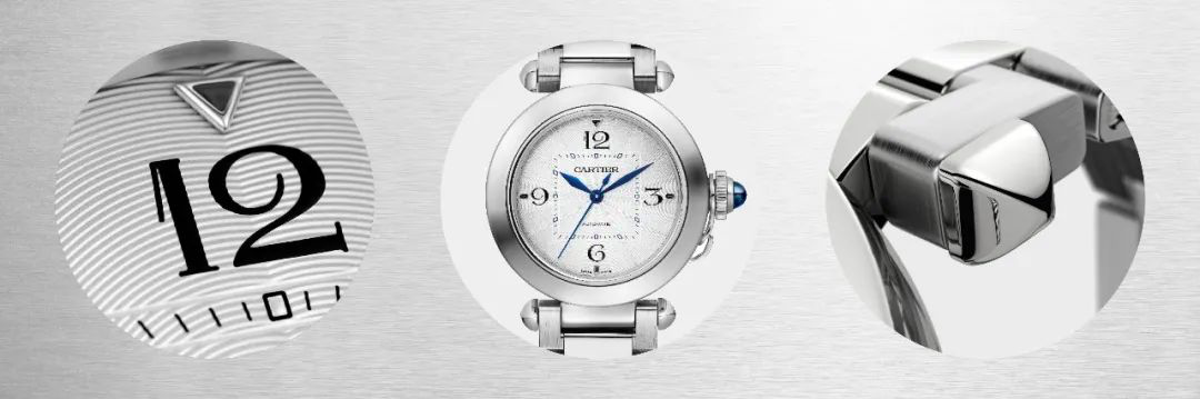 新的Pasha系列和1985年的第一代一样,但新的设计传达了卡地亚大胆的创造力,再次打破了钟表制造的常规,在圆形表壳内设计了一个方形轨道,一个链状的表冠和4个超大的阿拉伯数字。