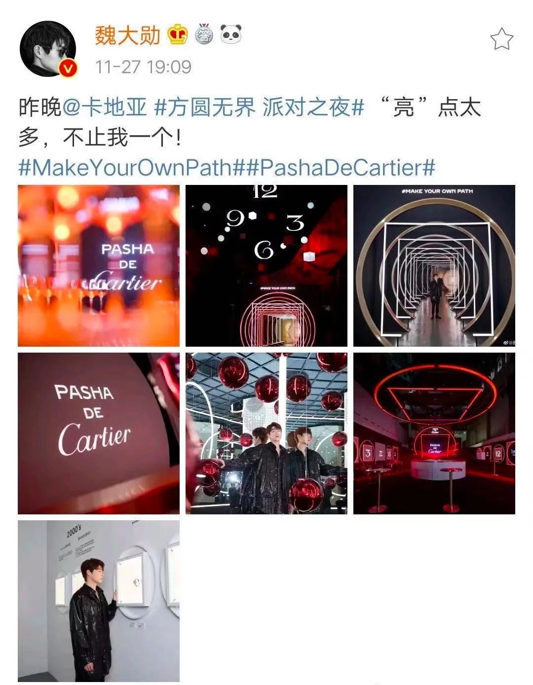 在中国卡地亚举行了“方圆无界”的派对,很多年轻艺术家和明星参与了这场派对。Troye Sivan, Maisie Williams等明星还现场做了连线直播,王嘉尔还唱了一首经典粤语歌一路上有你。