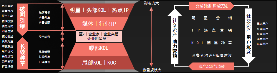 在这个全新的“生态圈”中,微博以六大举措——数据洞察(数据分析洞察用户潜在需求)、明星势能(释放明星势能挖掘粉丝经济)、KOL种草(打造KOL矩阵完成一站式种草拔草)、热点引爆(绑定热门IP话题借势引爆)、广告体系(精准广告体系导流拉新)、社交资产(沉淀私域社交资产),促进“圈”内各大主体良性互动,相互反哺。