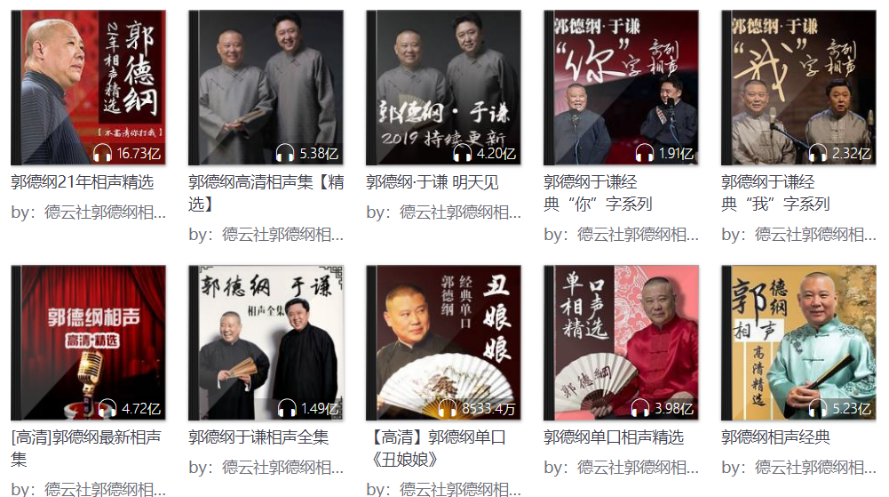 另一边,出走的天津人郭德纲建立的德云社,其相声录音、录像则在许可下被传到了互联网上,成了很多票友乃至门外汉的共享精神食粮。