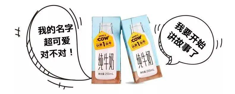再来看“认养一头牛“,一开始也没想到是一个牛奶品牌,从名字上就具备了“有趣的灵魂”。