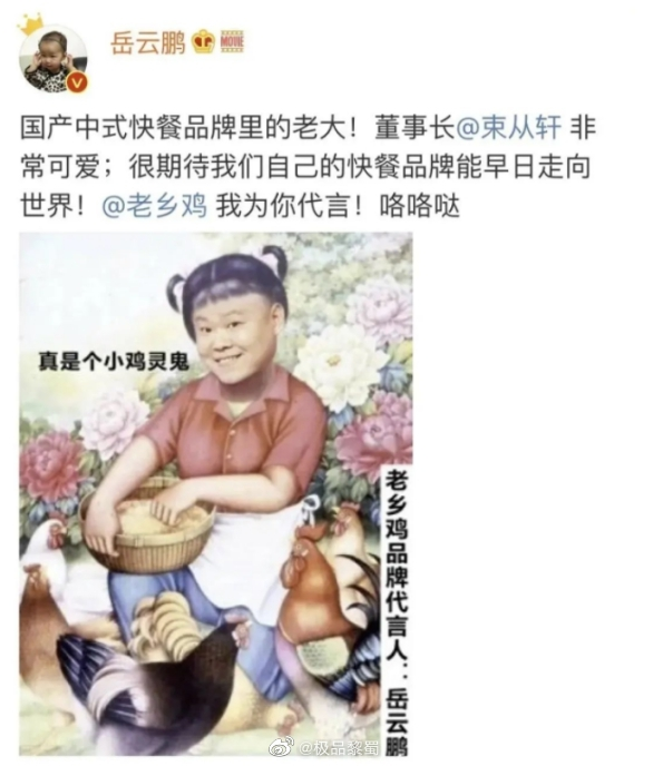 我们看到了网友促成了品牌和代言人的姻缘,比如网友促成岳云鹏和老乡鸡的因缘(代言),还有张亮和杨国福,虽然没有官宣代言,但我们从这些案例中看到了品牌去“聆听”和“回应”消费者的需求。