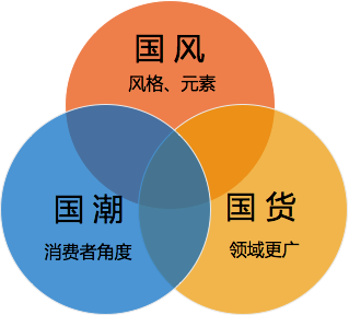 国潮一定是国货,但国货不一定是国潮,可以具备国风的元素,也可以不具备,三者之间是交集的关系。所以,我们常常讨论的国潮,其实是从“需求侧”角度,消费者端的分析,那么国货变成国潮,归根结底,其实是消费者对国货的一种“态度”。而这种态度,又源于什么?我们再刨根问底挖一下,是来自于国家崛起、经济腾飞带来的文化自信和民族自信。