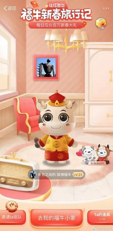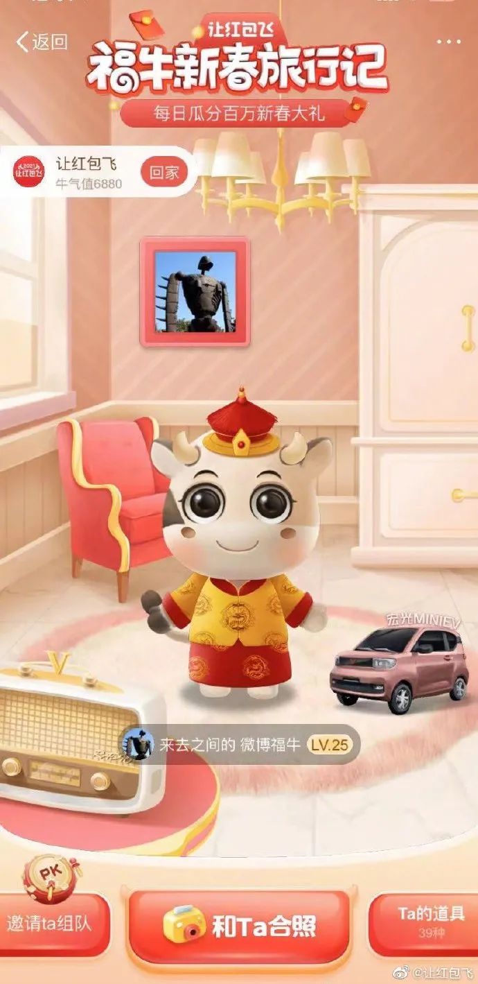 小讯采访了微博#让红包飞#项目运营团队,他们介绍道,这次的#福牛新春旅行记#活动在场景化、视觉系表达等方面都下了功夫,以趣味性、故事性让用户沉浸其中: