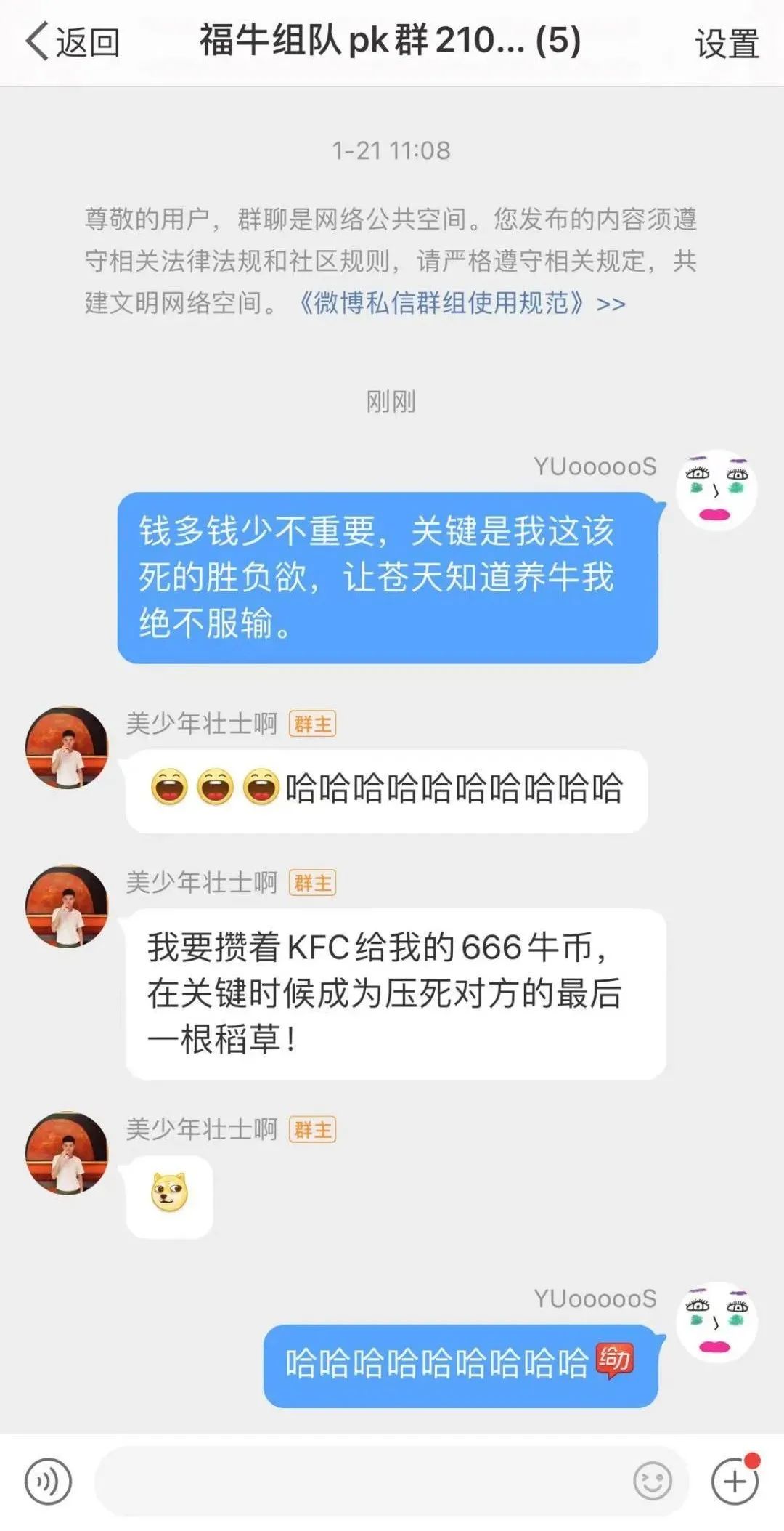 “微博下次不仅让自己队可以聊天,也得双方可以battle啊,我想喊话对方:放弃垂死挣扎吧,我们赢定了!!!!!!”