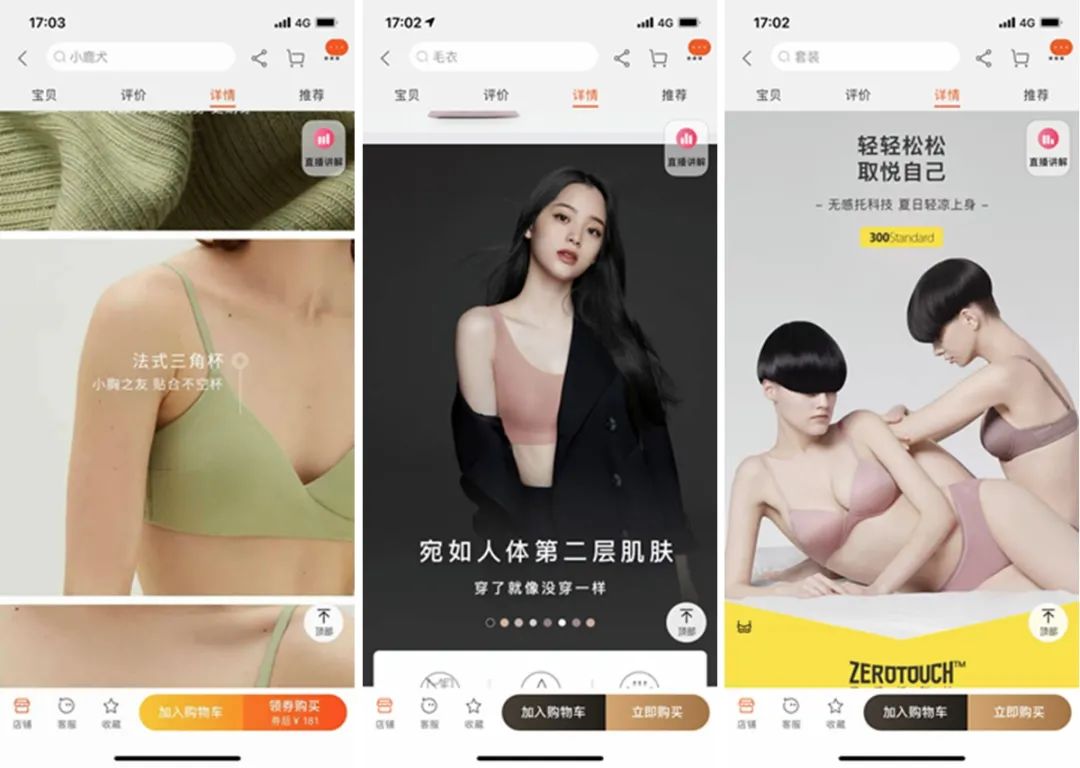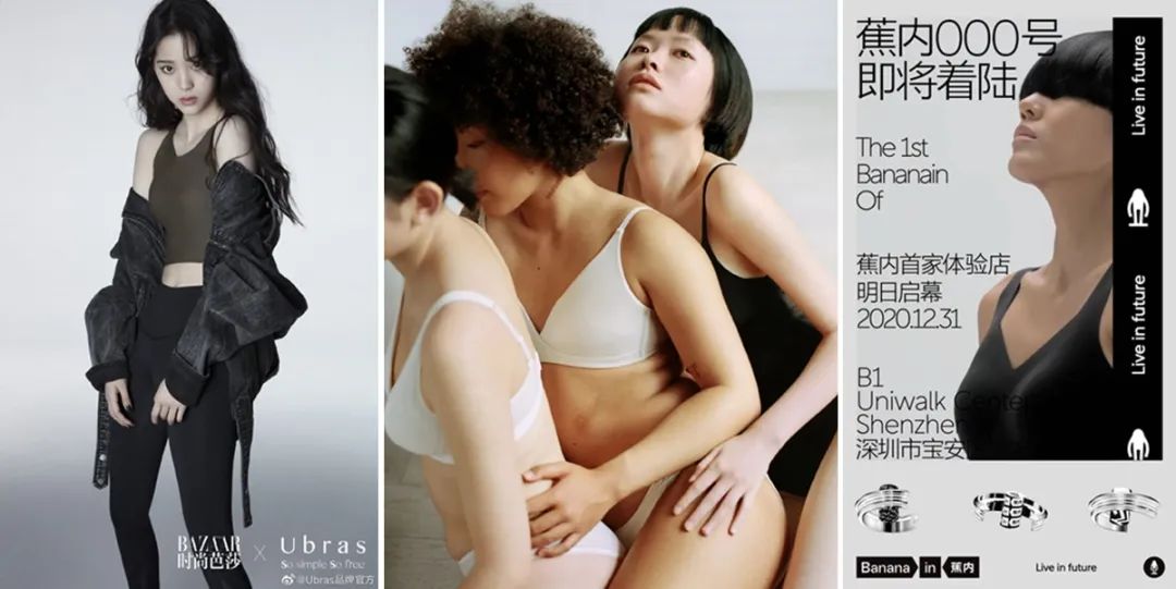 2020年天猫双11内衣销售榜,排名前二的Ubras和蕉内都是成立不满五年的新品牌。线上渠道的发展,给内衣新品牌带来了弯道超车的机会。百货商场里的传统内衣店已不那么适合年轻消费者,她们更倾向自己上网做功课,并通过网购来选择适合自己的内衣。此外,直播带货全面爆发,更是为内衣商家提供了更为即时有效的流量转化思路。新消费品牌Ubras、蕉内和gukoo也登上去年双11天猫内衣商家直播榜Top3。