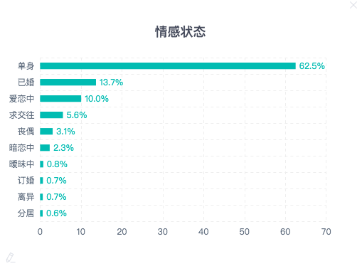 2.单身用户相比情侣更加活跃。62.5%的参与用户均为单身,“自嘲、调侃”个个显示出段子手的潜质,单身文案、表情包登上热搜。