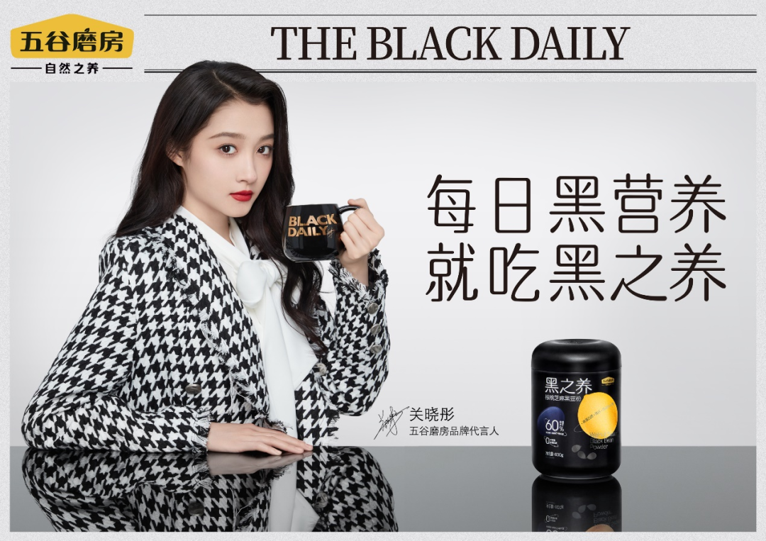 “今日,我们正式官宣!@五谷磨房 与全新品牌代言人@关晓彤 携手,开启‘新’黑养时代!”5月31日,五谷磨房在微博发出官宣。