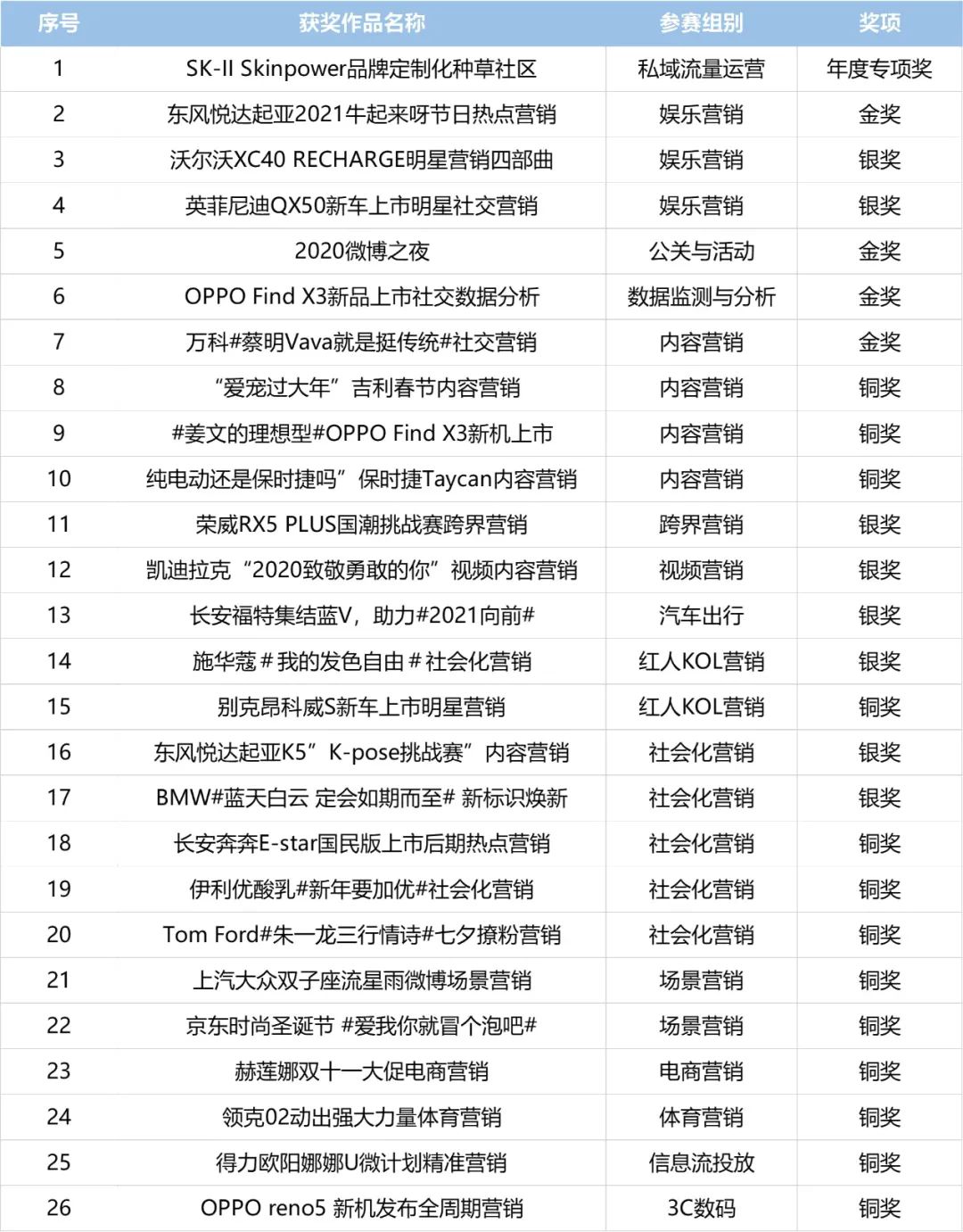 7月7日,第九届TopDigital创新营销奖颁奖典礼在上海圆满落幕。据官方数据显示,今年TopDigital创新营销奖共收到来自651家公司提交的2832件参赛作品,微博携手客户脱颖而出,共斩获26项大奖,其中“东风悦达起亚2021牛起来呀节日热点营销”案例凭借“起亚=牛起来呀”的创意品牌洞察,邀请明星、用户牛角姿势拜年,依托微博娱乐优势玩转CNY营销,获得了全场大奖提名。