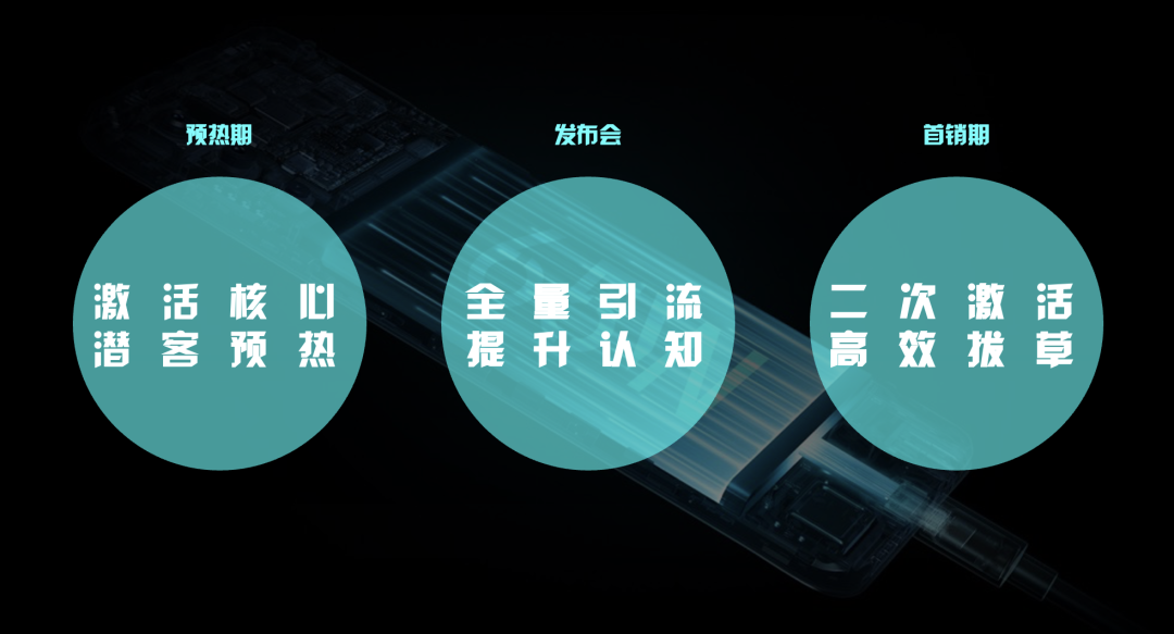 我们以K9系列营销为例,以发布会为核心,OPPO将整体营销阶段划分为预热期、发布会、首销期,并根据这三个阶段梳理了有序的营销核心目标和节奏。