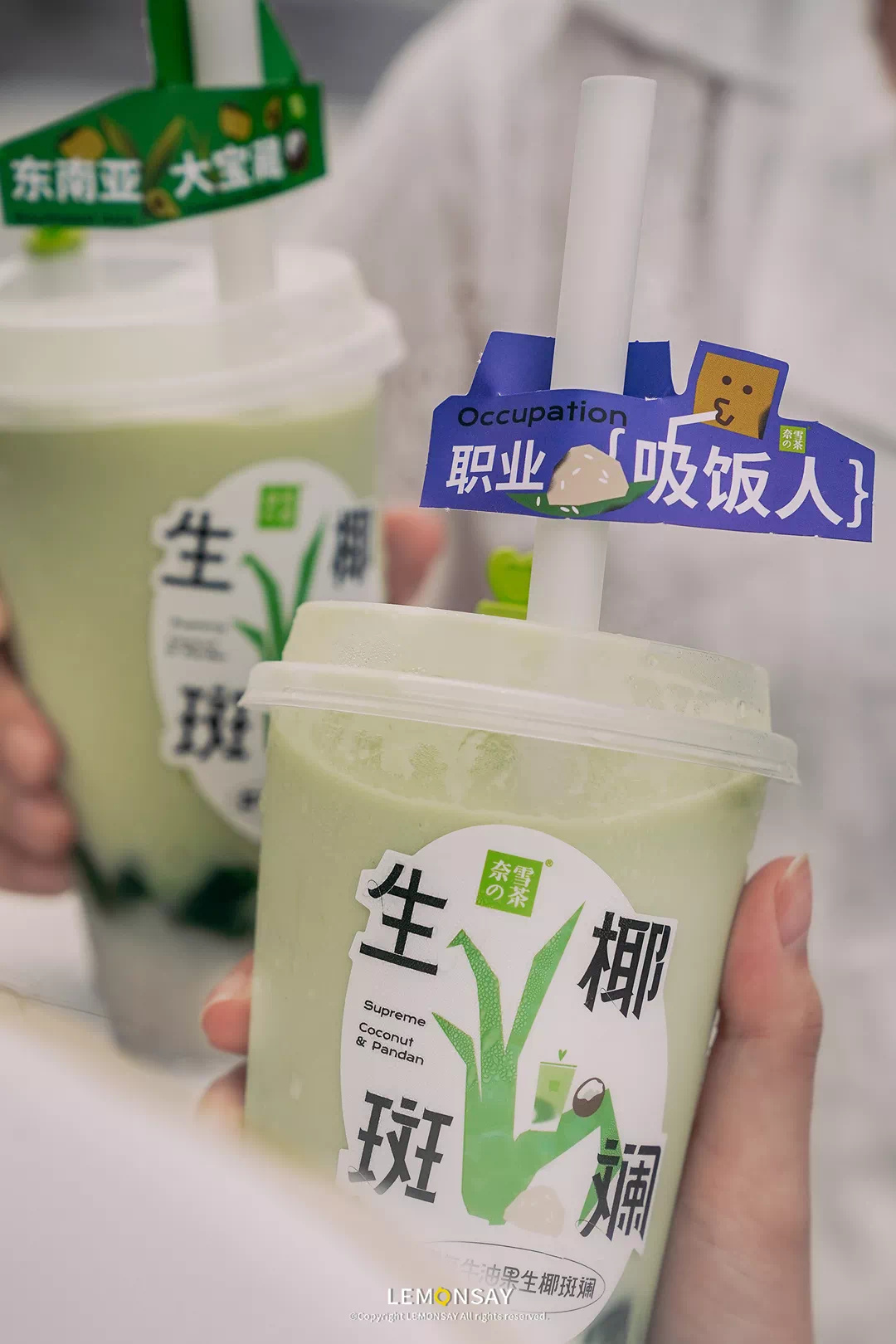 这其中最值得分享的就是“霸气牛油果生椰斑斓”,奈雪竟然把东南亚特色美食甜品生椰糯米饭做成了杯装的饮品。这款特色美食由生椰、斑斓、牛油果和糯米饭等原料构成,以香浓的生椰糯米饭为底料,搭配糯香斑斓风味冻,带来东南亚夏日的新奇体验。值得一提的是,斑斓风味冻的原料是取自东南亚常用特色香料之一的斑斓叶。