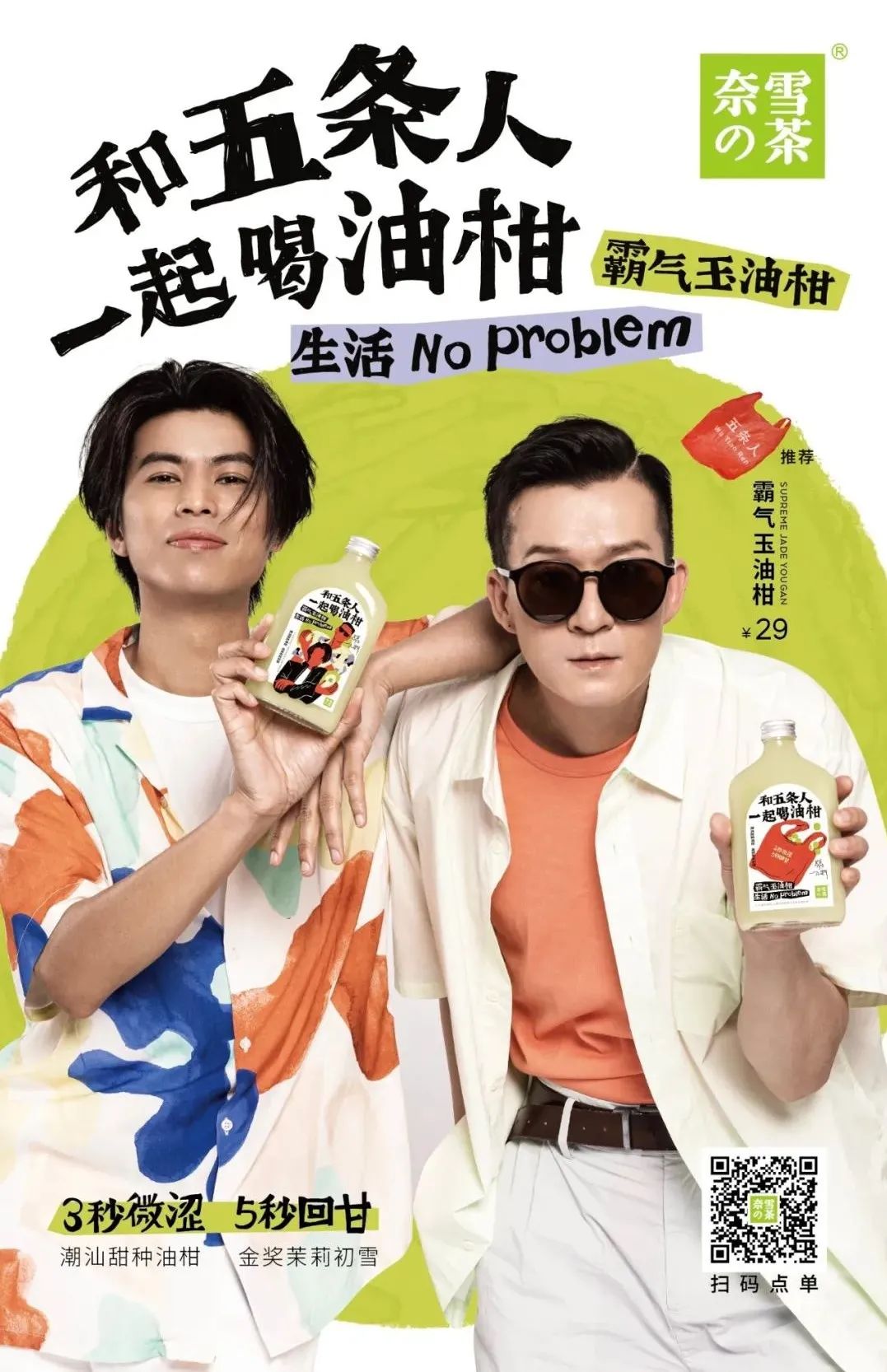 在病毒式营销领域,奈雪可以说是玩得驾轻就熟。在此前,奈雪的茶就洞察到了潮汕特色水果油柑“先涩后甜”的特点,与乐队五条人的大胆、坚持、向上、乐观的精神内核如出一辙。