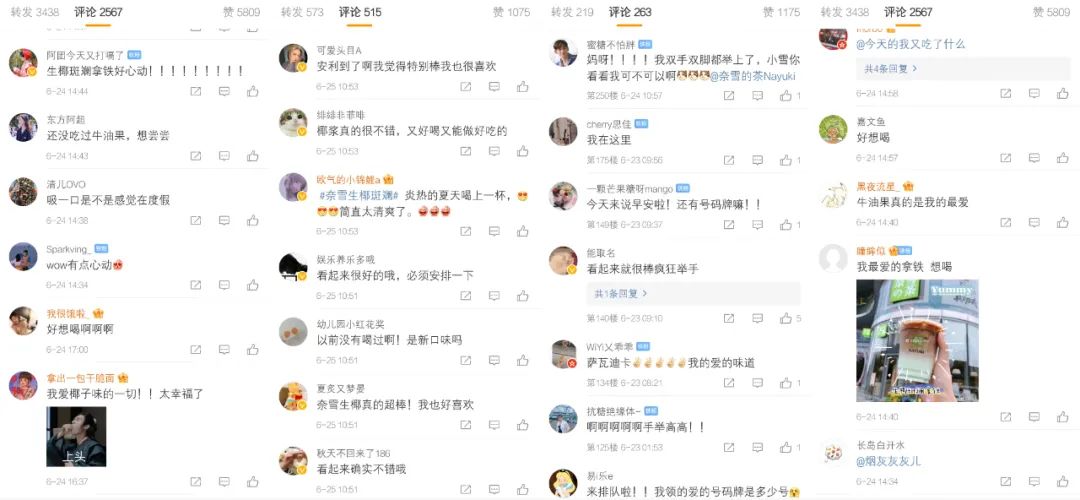 在这个过程中,奈雪也凭借连续剧场的病毒式营销,赋予油柑特色水果social化表达,以唤起情感共鸣的方式与消费者进行沟通。当营销内容变得接地气、更贴近人心的时候,起初消费者并不熟悉的小众鲜果油柑也很快吸引了观众缘,奈雪顺势把霸气玉油柑打入消费者心智中,将小众的地方美食推向了大众,做了一波有温度的地域美食品类传播。