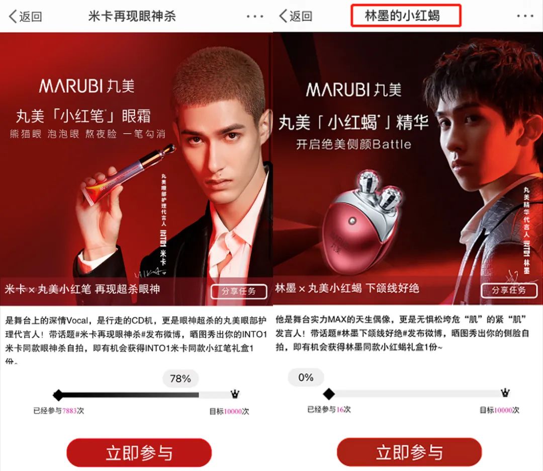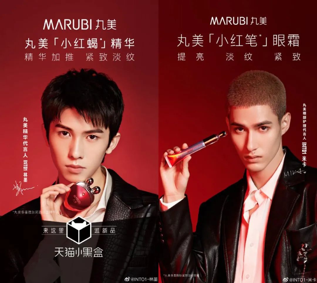 而养成系明星在用户群中拥有强大的号召力,继去年丸美签约青年偶像朱正廷成为品牌大使,取得了品牌传播和销量双丰收之后,今年,丸美再次签约新生代青年偶像为代言人,《创造营2021》成团“INTO1”的林墨为精华代言人,米卡为眼部护理代言人。