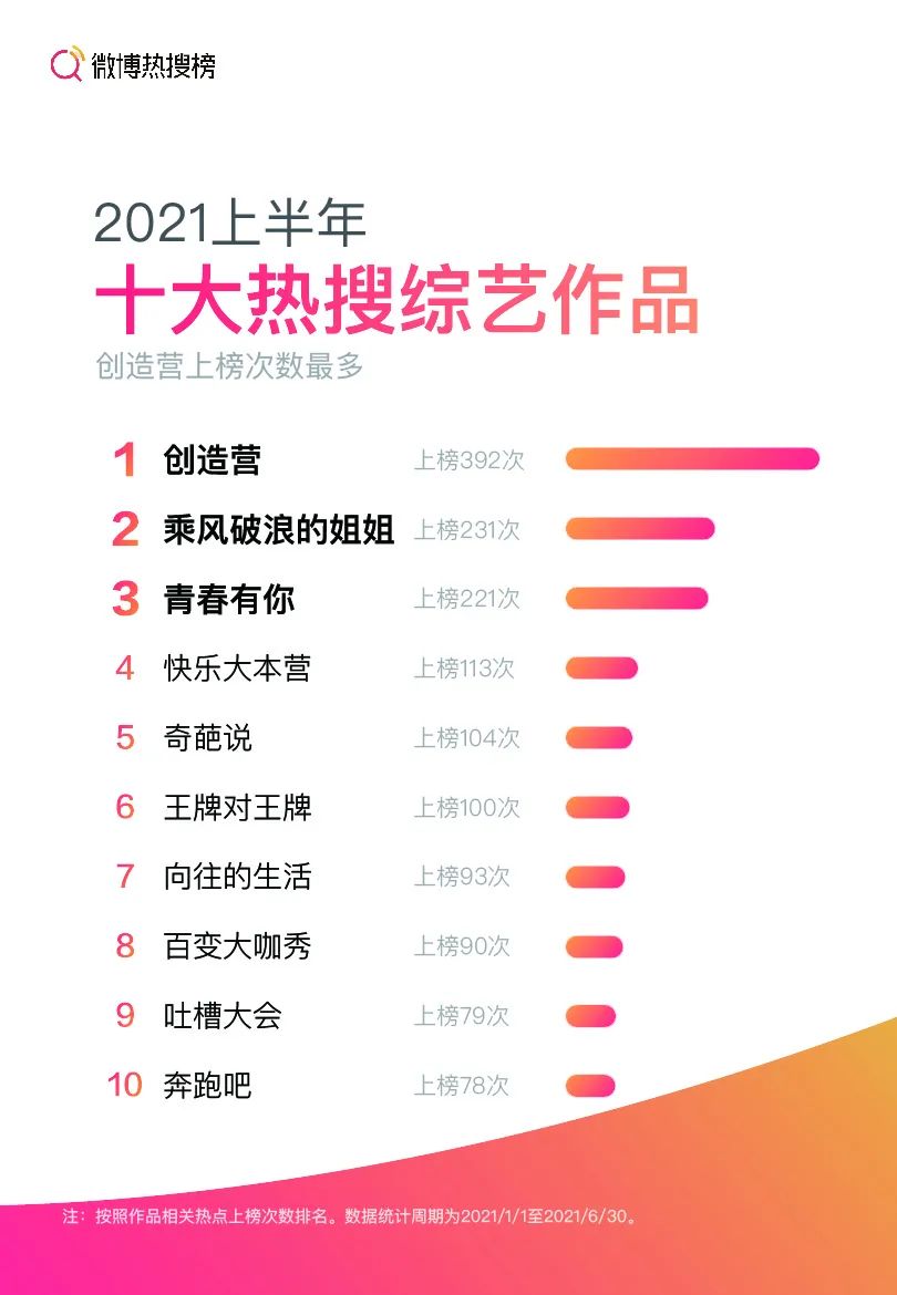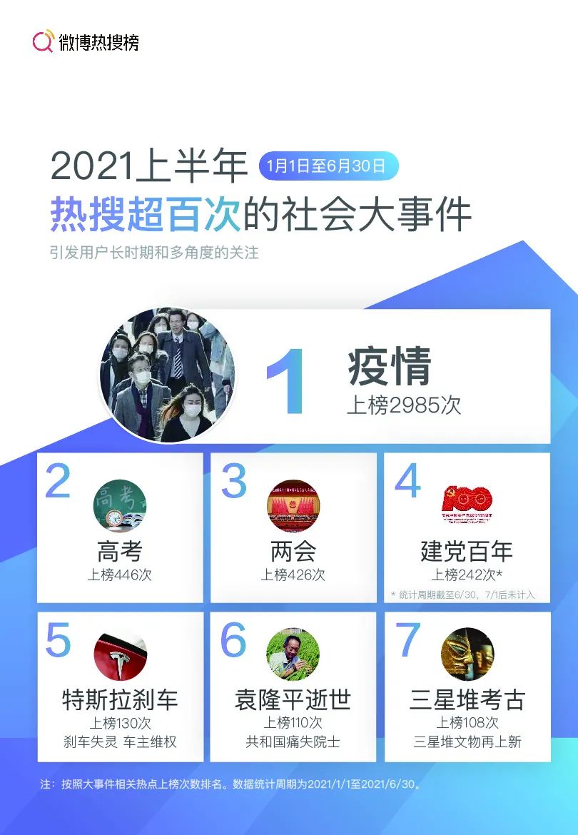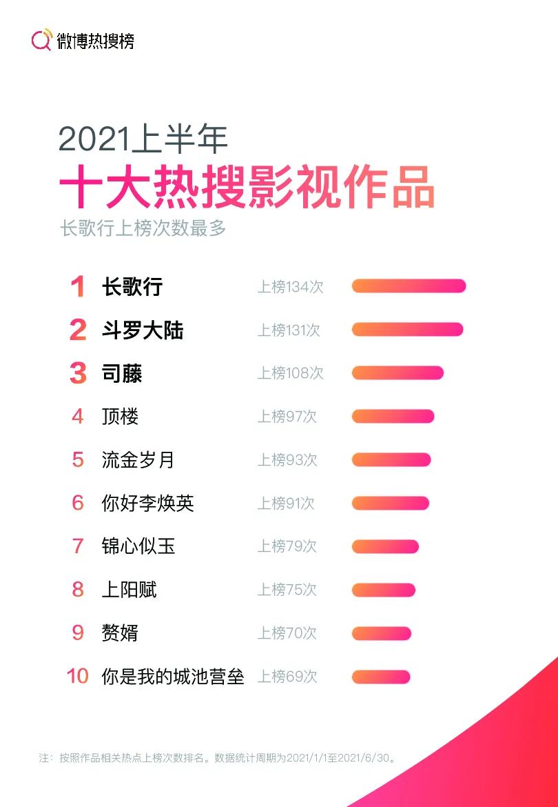 8月24日,新浪微博发布《2021上半年•微博热搜榜趋势报告》(以下简称“报告”)。报告从上榜次数、在榜时长等多个维度,充分展现了2021年上半年微博热搜发生的变化,并反映出热搜榜逐渐向机制透明化、规则透明化、结果透明化发展。