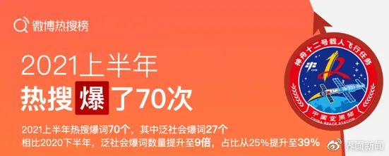 仅上半年半年的时间里,热搜就爆了70个。能够引爆热搜的话题里,社会相关话题如“三孩生育政策”、“袁隆平离世”等占了27个,其比重相比以往的25%提升至39%。