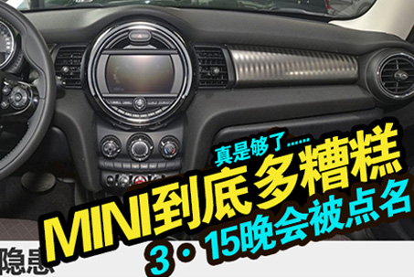 老百姓们向来都对德国货心存“做工精良、安全坚固”的印象,但是今年的3·15晚会上,有一句话相信大家没太注意,那就是有关MINI召回的问题,这是12315网站的功劳。