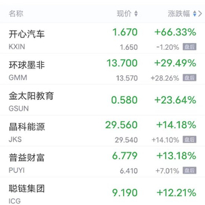 领涨中概股列表: