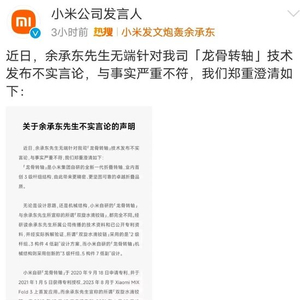 因此,小米方面认为,余承东是在指责小米。12月12日,小米公司发言人在微博发文表示:“近日,余承东先生无端针对我司‘龙骨转轴’技术发布不实言论,与事实严重不符。”