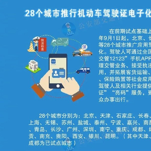 为进一步深化公安交管“放管服”改革扩大改革措施覆盖面经部分省市试点推行。9月1日起,驾驶证电子化公安交管便利措施将在北京等28个城市推广应用。