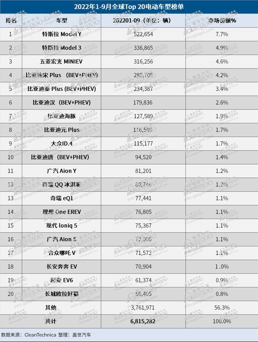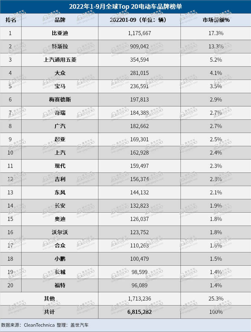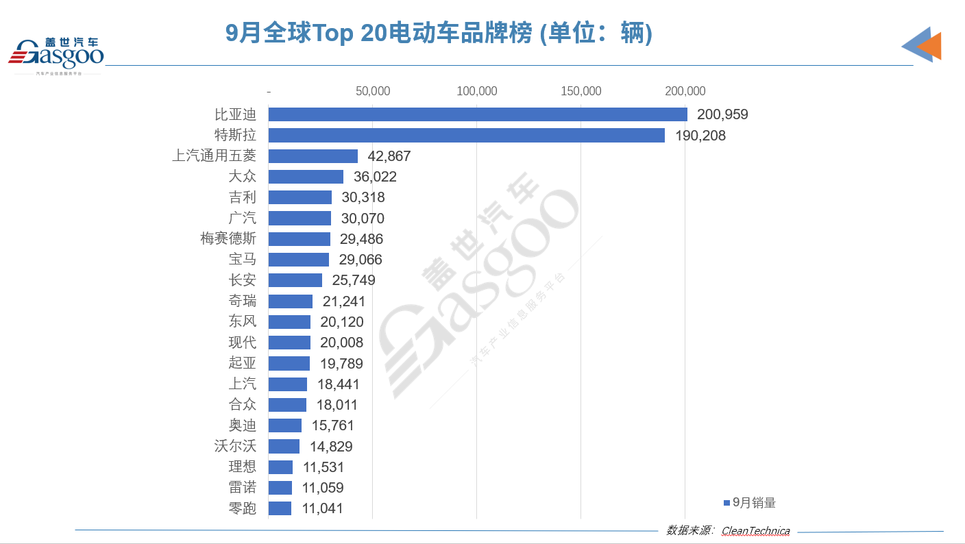 9月全球Top 20电动车品牌榜:不断进击的比亚迪