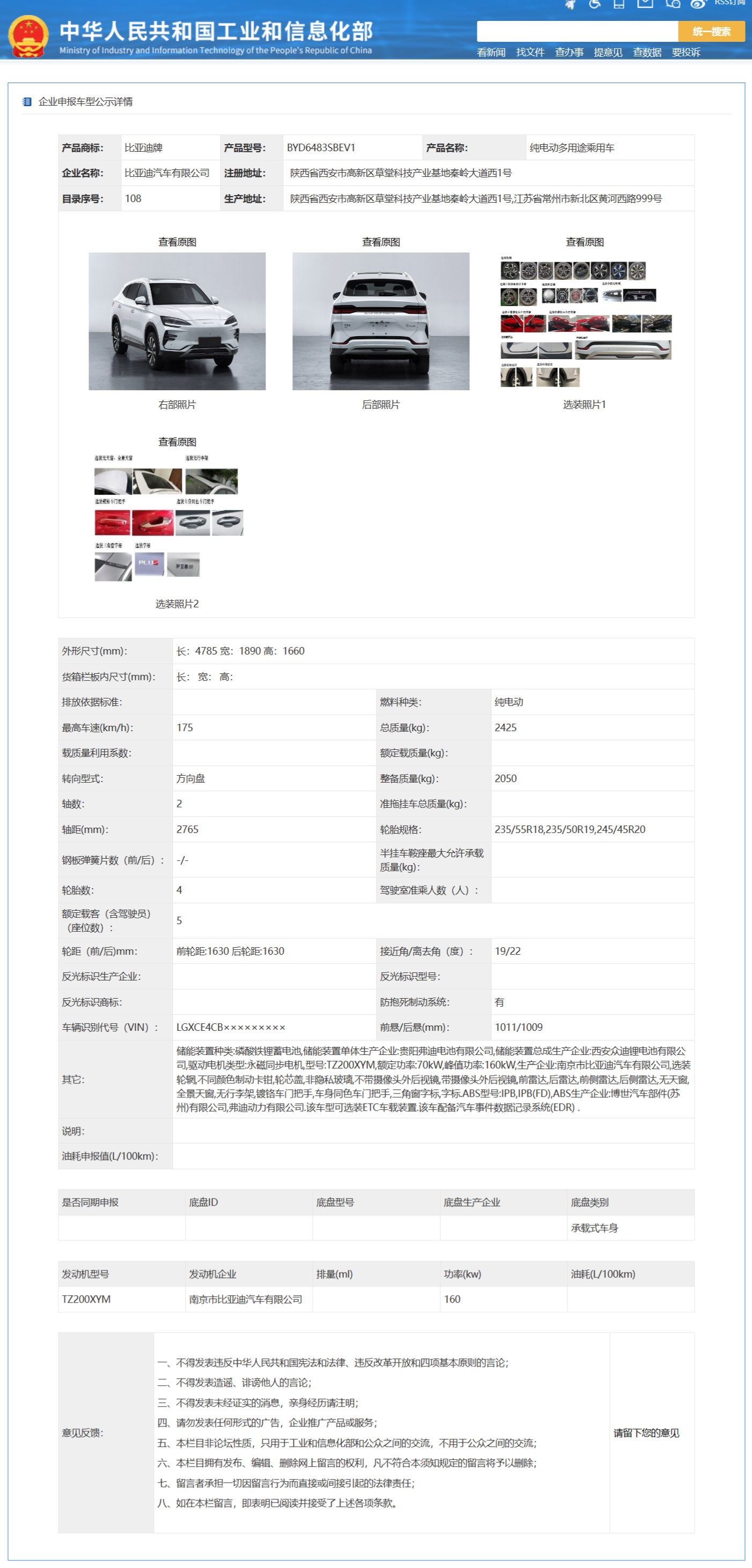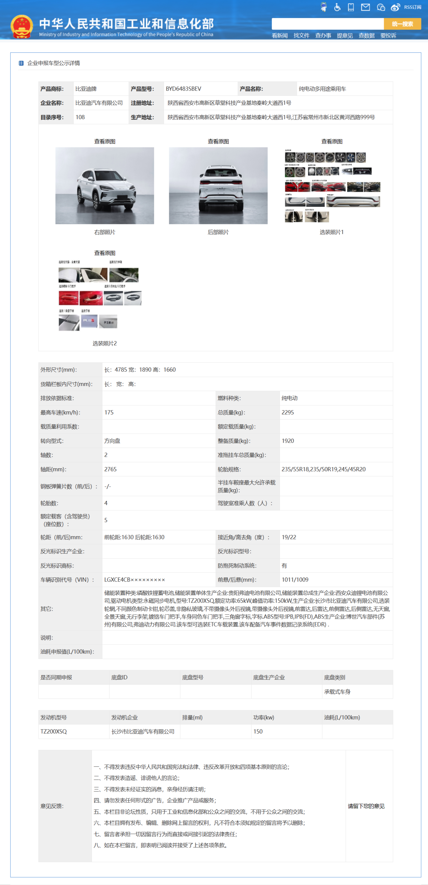 整车尺寸为 4785/1890/1660mm,轴距 2765mm;采用海洋美学设计,前脸的标改成使用 BYD 字母;拥有一系列选配部件。