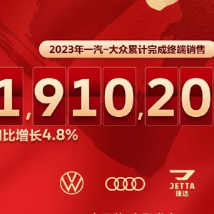 IT之家 1 月 4 日消息,一汽-大众 2023 全年终端销量数据出炉,累计完成终端销售 1,910,205 辆(含奥迪进口车),同比增长 4.8%。