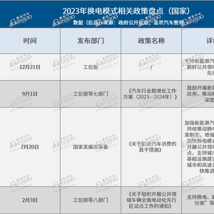 其实,稍加回顾2023年不难发现,无论是国家层面还是各地方政府,都出台了一系列促进换电站建设和换电车辆推广的支持政策,这无疑为换电模式在2024年的加速发展增添了新动能。本文就2023年推出的换电政策进行梳理汇总,供业界参考。