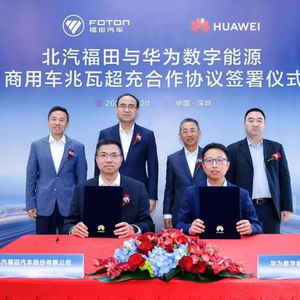 5月20日,北汽福田汽车股份有限公司(以下简称“福田汽车”)与华为数字能源技术有限公司(以下简称“华为数字能源”)正式签署合作协议,双方将共同打造多场景解决方案,构建兆瓦超充网络,推动重卡行业迈向全面电动化,为物流行业的大规模降本减碳注入新动力,开启全电物流新时代。