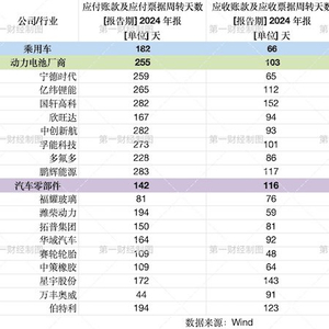 值得注意的是,动力电池厂商亿纬锂能(265天)、孚能科技(273天)、国轩高科(282天)、中创新航(282天)、鹏辉能源(283天)均比宁德时代付款周期更长。