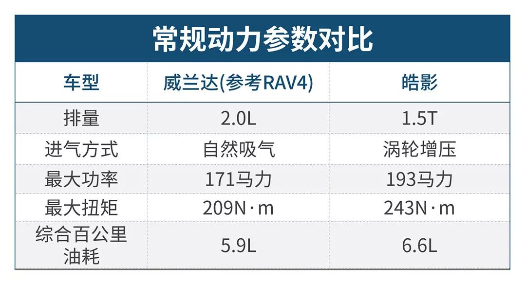 常规动力方面,从数据上看皓影1.5T的发动机在动力上更加强劲一些,适合对动力有着较高要求的消费者,这也是本田一直广受欢迎的原因之一;但是丰田威兰达的2.0L发动机,在动力的平顺性和油耗的兼顾上更强,更加符合日常驾驶的需求,面向家用人群多一些,同时在稳定性和可靠性上长久以来有口皆碑。二者在常规动力上可以说是各有千秋。