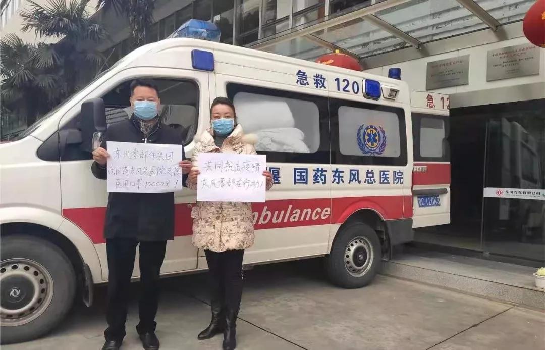 东风零部件集团向国药东风健康产业公司捐赠医用口罩10000只。东风零部件集团、东风特种装备事业部(东风越野车有限公司)、东风商用车、东风特种商用车公司共捐赠给国药东风健康产业有限公司400套防护服,900个护目镜。东风商用车为东风出行十堰应急车队捐赠隔离防护服50套,防冲击眼镜50个。