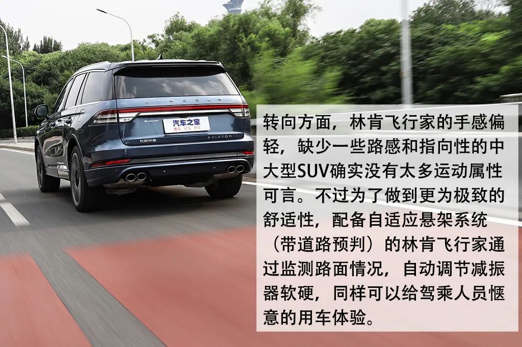在体验中,林肯飞行家隔音降噪水平得到了我们的认可,全系标配ANC主动降噪,前风挡、侧窗标配五层降噪玻璃发挥了重要作用。整体来说,林肯飞行家的驾驶质感符合我的预期,无论从动力表现、变速箱平顺性还是底盘调校风格,我们可以明显感受到林肯飞行家趋于沉稳、豪华、舒适的设定。