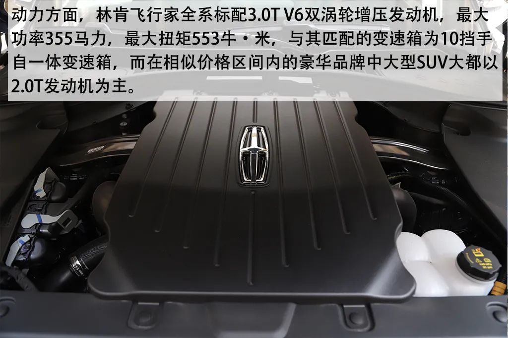小编有话说:林肯飞行家保持了美系SUV的多项特质。从设计看,它的气场强大,商务属性突出,而且车身尺寸确实具备不小优势;在内饰方面,林肯飞行家更强调驾乘人员的舒适性,座椅柔软填充物厚实,多项舒适性配置都可以为消费者提供极致的驾乘环境;在动态表现方面,全系标配3.0T V6双涡轮增压发动机,在50-70万售价区间内,林肯飞行家是豪华中大型SUV唯一全系采用3.0T 六缸发动机的车型,它将有更出色的动力表现及平顺性,这点毋庸置疑。再来看价格,新车厂商指导价50.98-75.98万元,在同级别豪华SUV阵营中还是具备很高性价比的。