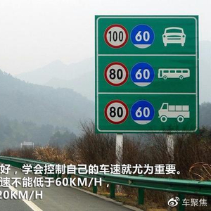 虽然国内高速的最高限速为120km/h,但在实际行驶过程中,仍应以道路限速标志指示的速度为标准。国内高速公路的车道设置由同一方向的两车道到四车道不等,每条机动车车道的限速也是不同的。另外,不要认为超速是违法的,高速公路上过低的速度也是违规的,而且危险也很大,一旦发生追尾事故的后果将是不可想象的。
