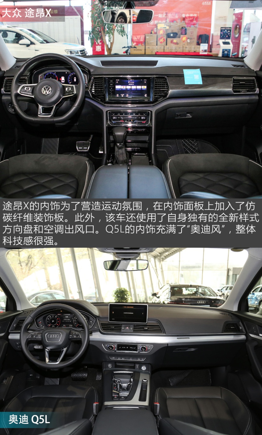 如今大部分家庭在购买第一辆车的时候都会优先考虑SUV车型,因为与轿车相比,SUV车型有着更好的空间表现和更出色的通过性,面对长途出游、大宗采购等情况也能更加游刃有余。而且现在的年轻消费群体不仅仅看中车辆的实用性,颜值、动力、个性化和配置也都成为了消费与否的前提。如果你的预算在40万以内,想买一台空间大配置高的SUV,可能备选中都绕不过途昂X (配置|询价)和奥迪Q5L (配置|询价)这两款车。为此,本期X擂台特意选了2020款途昂X 380TSI 四驱尊崇豪华版(厂商指导价:34.99万)和2020款奥迪Q5L 40TFSI荣享时尚型(厂商指导价:41.58万)作为参赛选手,看看谁能在这场比拼中获得最终的胜利。