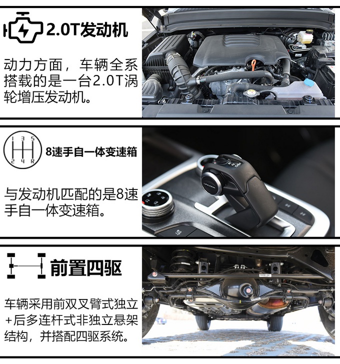 非承载式车身、全地形控制系统、三把锁以及底盘透视等等,让很多在这个级别中考虑买硬派SUV的人听上去就很是过瘾。当然,再了解到它的配置表现更是出色,像大量科技配置不但能保证行车安全性,还达到了L2级自动驾驶,可能心里想到的就是,可以下单了。