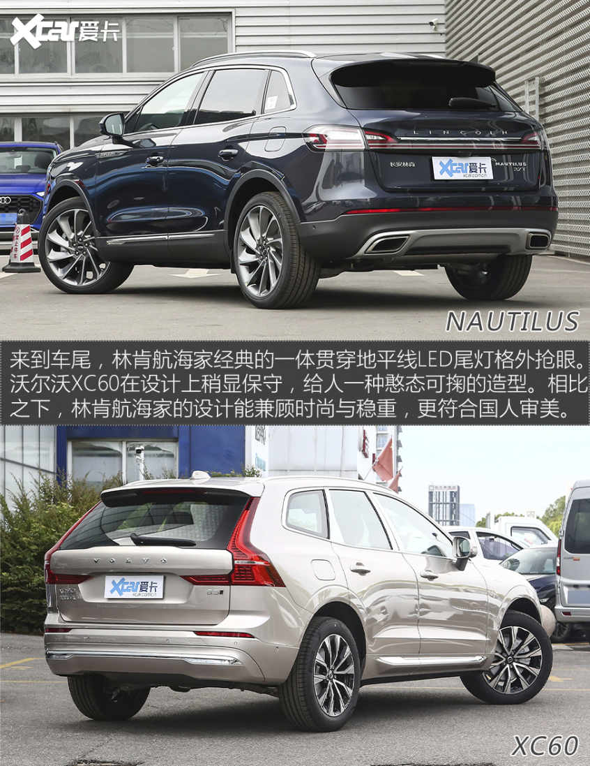 两台车的设计都采用了各自品牌的经典风格,林肯航海家采用了豪华氛围十足的美式装潢,而沃尔沃XC60则采用了北欧流行的简洁风格。但有利就有弊,沃尔沃XC60的极简风格设计,势必要损失一定的实用性,例如实体按键较少、多功能方向盘按键逻辑复杂等等……其它方面,林肯航海家无论是车内用料,还是配置丰富程度,都要领先同价位的沃尔沃XC60,就性价比而言,选择林肯航海家还是非常香的。