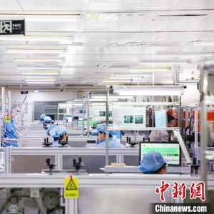 中新网深圳3月12日电(记者 郑小红)位于深圳龙岗区的比亚迪宝龙工业园,是一个拥有完备、先进智造产线的现代化厂区,一天可生产50万台高端手机。但一个多月以前,这里却建起了一个日产500万只的口罩生产厂。记者12日在这里看到,口罩生产线目前正处于满负荷运转状态。