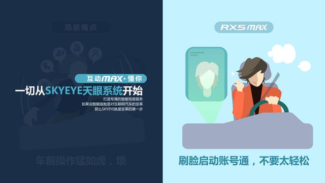 荣威RX5上的另一大特点“互联网”,在RX5 MAX 上也得以升级。中控大屏集成了全新的HMI系统,互动、服务、情感三方面交互升级:AI场景化界面,用来实现更多个性化出行服务推荐;超级ID升级,娱乐账号多端互通;AI萌宠。同时也开放了全车区域对中控大屏的配对和操作。