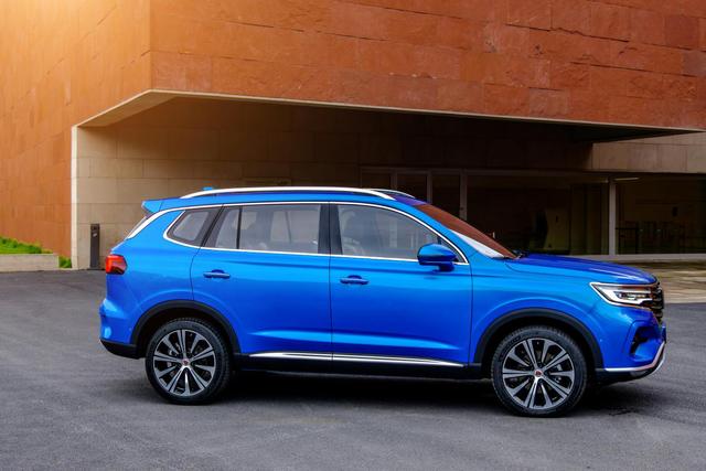 品鉴车型的涂装是RX5 MAX的主打色“智能蓝”,实际感官上,这种蓝色介于亮蓝和靛蓝之间,在阳光下更偏向靛蓝色,搭配车身造型,给我的感受就是青春和活力,会更吸引年轻人。