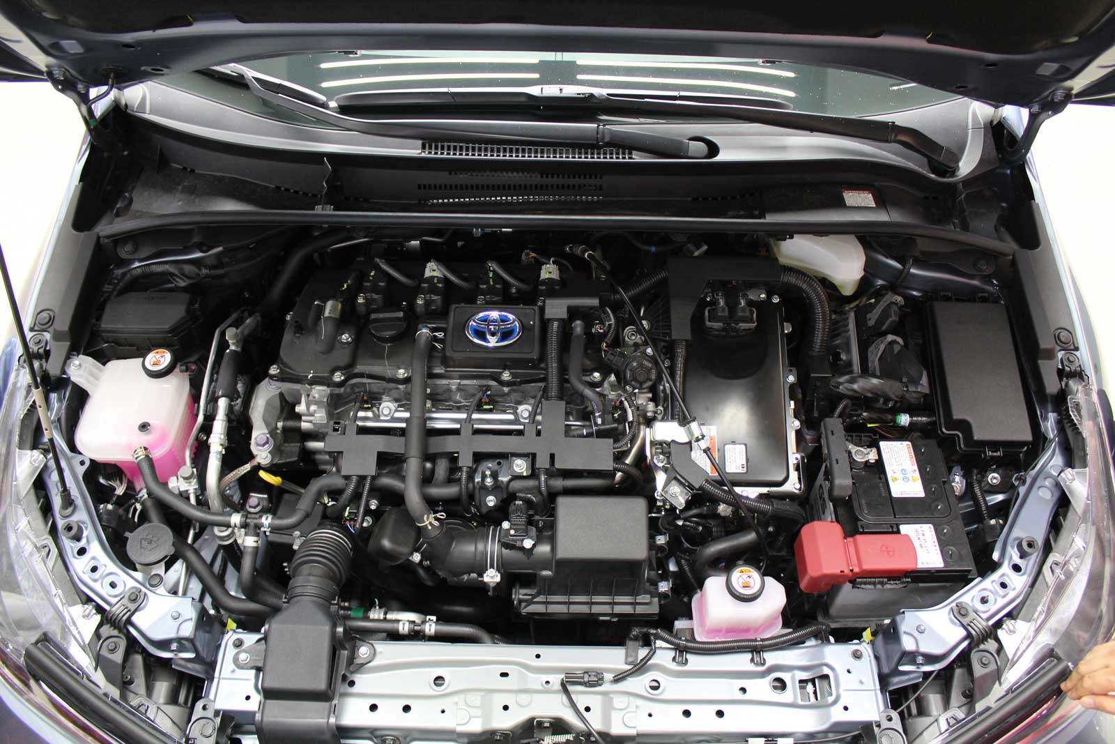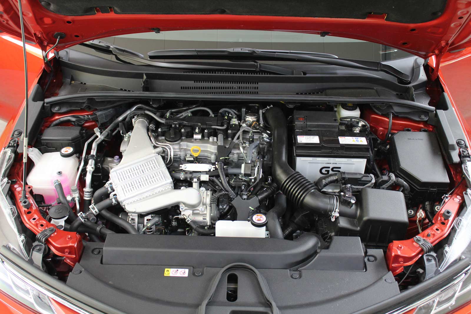 双擎版自不必说,丰田混动有口皆碑。1.8L阿特金森循环发动机搭配改进了进气管和活塞的冷却系统,提高进气效率。E-CVT双电机布局由先前串联式结构改为并列式排列,整体体积缩小,PCU动力控制单位改为纵置,体积更小。轻便镍氢混合动力电池组安装在后排座椅下方,因而全新卡罗拉混动版具有和燃油版相同的后备箱空间,容积均为470升。