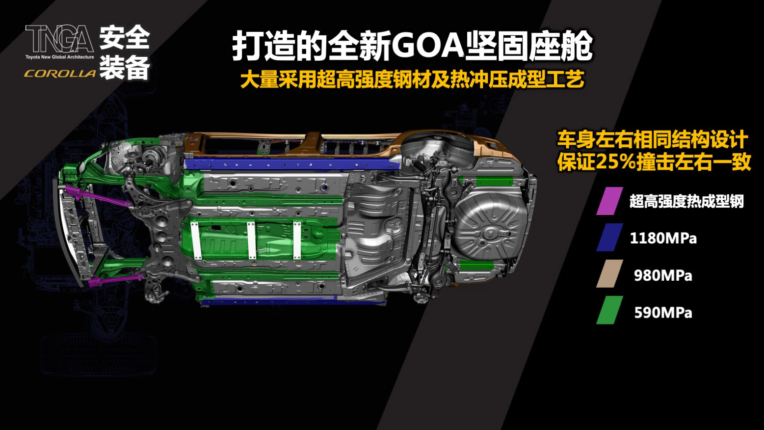 TNGA架构车型的高主被动安全规格在全新卡罗拉上得以延续,全系标配8安全气囊和10项主动安全装备,安全配置上的“一视同仁”值得称道,车身材料结构安全也是兼顾到位。
