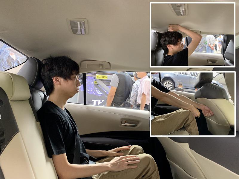 空间方面,模特身高173cm,将前排座椅调整到他合适位置,头部空间有一拳多一点距离。前排不动来到后排,腿部空间有两拳多距离,头部空间有一拳距离。这样来看腿部空间表现还是比较出色,但后排头部空间略显尴尬。