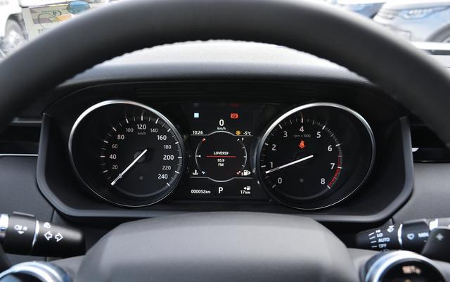 驾驶席位置,四幅方向盘与大哥揽胜为同款,全系真皮包裹,低配车型可手动上下、前后调节,而高配车型则支持电动,此外,高配车型还有方向盘加热功能,而低配则需要花2000元选装。