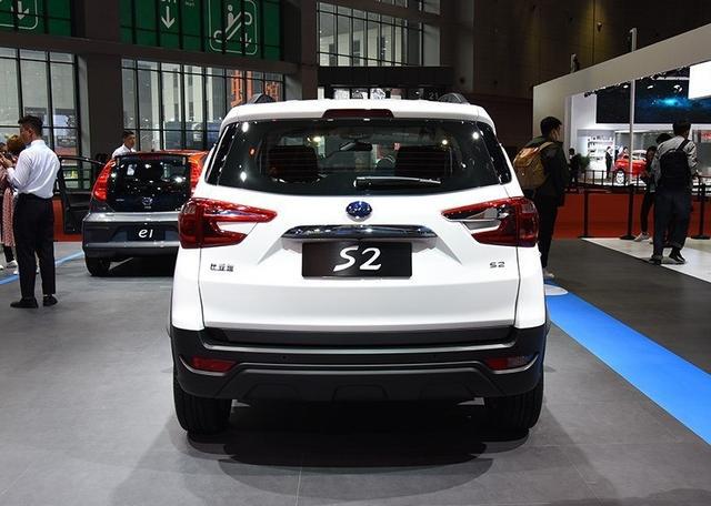 从尾部看过去,比亚迪S2的LED尾灯造型也较为潮流时尚,并采用了熏黑设计,由于是纯电车型,所以并未安置排气管结构,而塑料包围的设计也没有缺席。